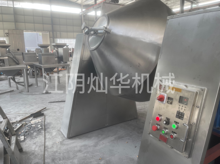 旋转的双锥筒使筒体内物料产生紊乱翻滚混合,使物料在筒体内快速混合。这种混合方式可以有效地使物料达到均匀一致的效果。